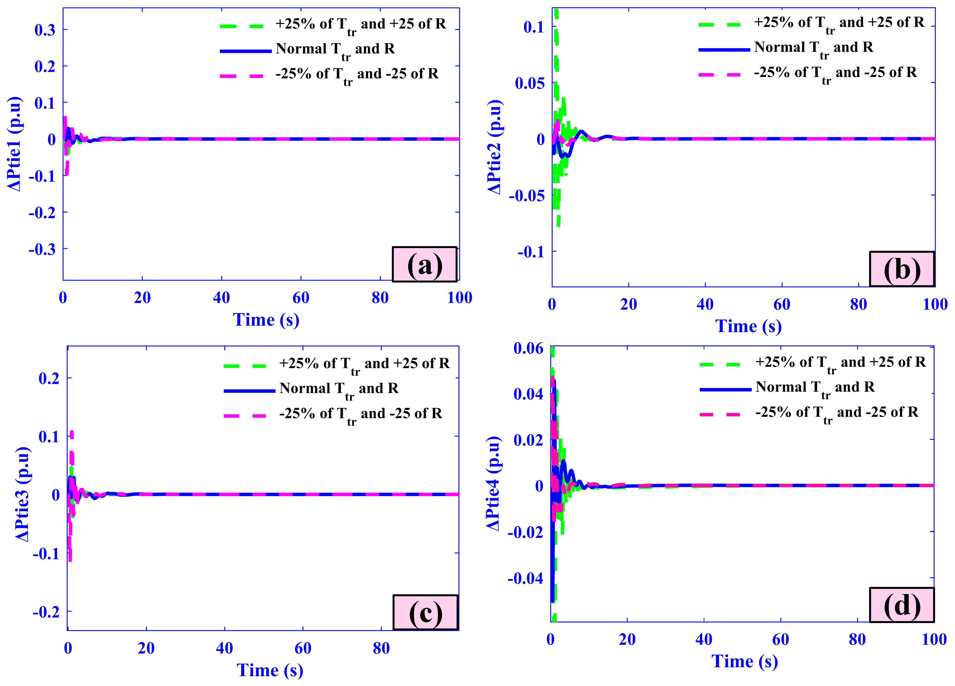 Table 13. AOA-PI(1+DD) control approach numerical results of tie-line power deviation responses with ±25% changes in system parameters (Case three).