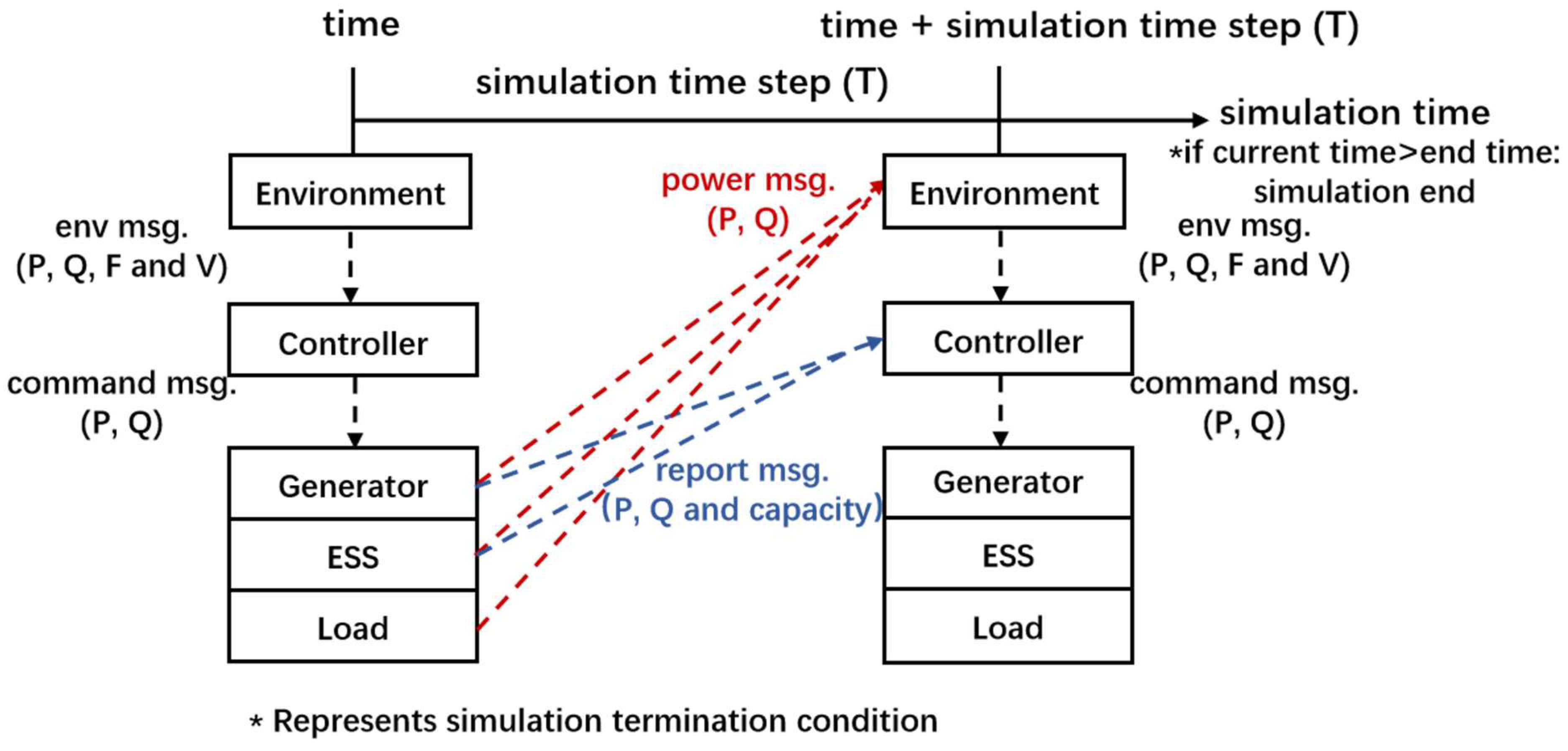 - All system components are modeled based on agents and rely on DEVS to achieve rigorous mathematical formalized representation. DEVS endows the modeling process of each component with mathematical logic and derivation basis, while the modular characteristics of agents ensure the flexibility of the overall model. Specifically, the addition, removal, or reconstruction of components can be realized only by adjusting the mathematical parameters and interaction rules of the corresponding agents, without changing the overall mathematical architecture and logical topology of the model. This further ensures that the model can accurately adapt to power systems of different scales and operating scenarios under strict mathematical constraints.