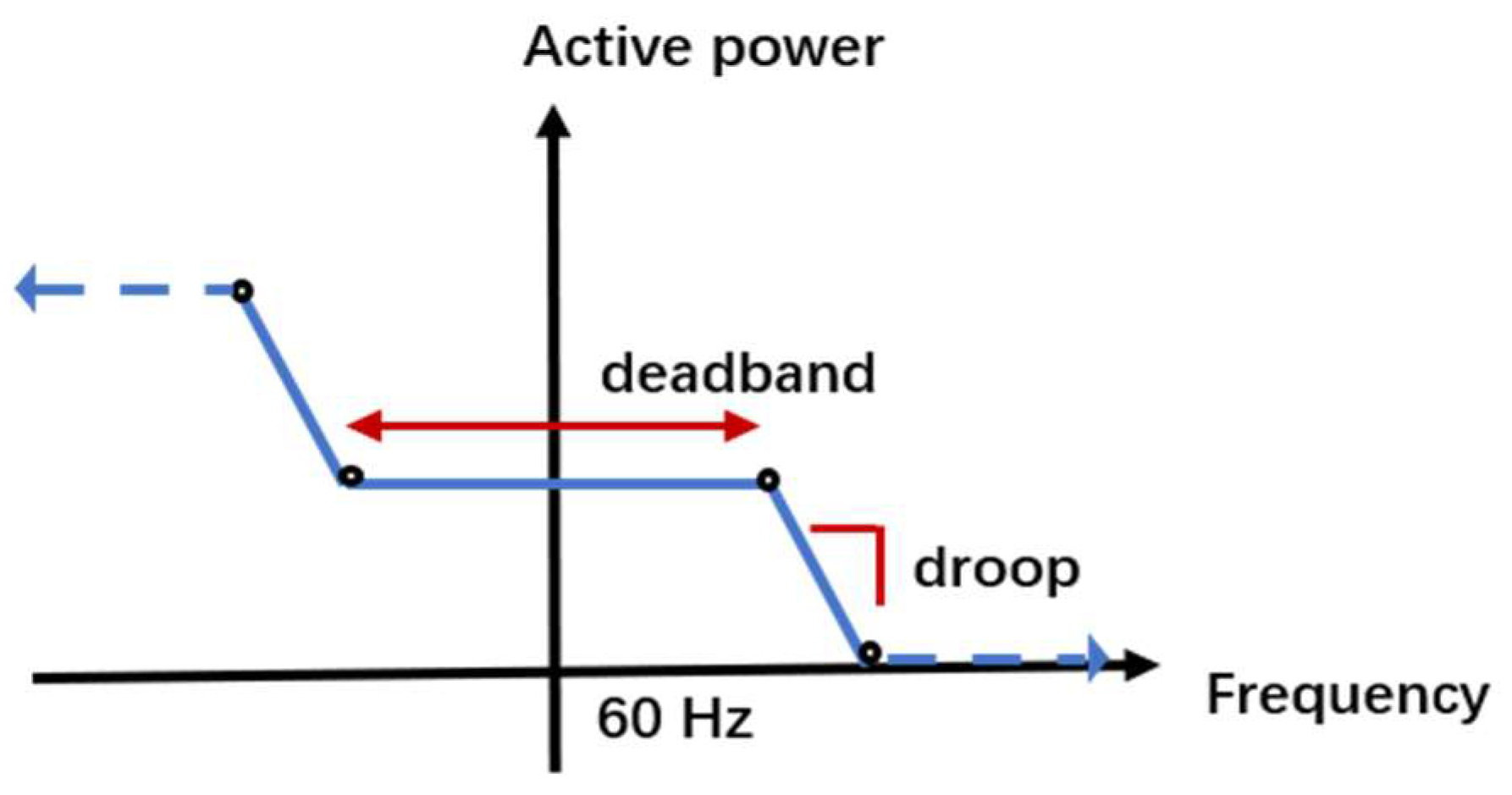 | AGC | Controls the no-load frequency of synchronous generators to restore system frequency when deviations exceed threshold values. | Applied when system frequency deviation exceeds 0.05 Hz. |