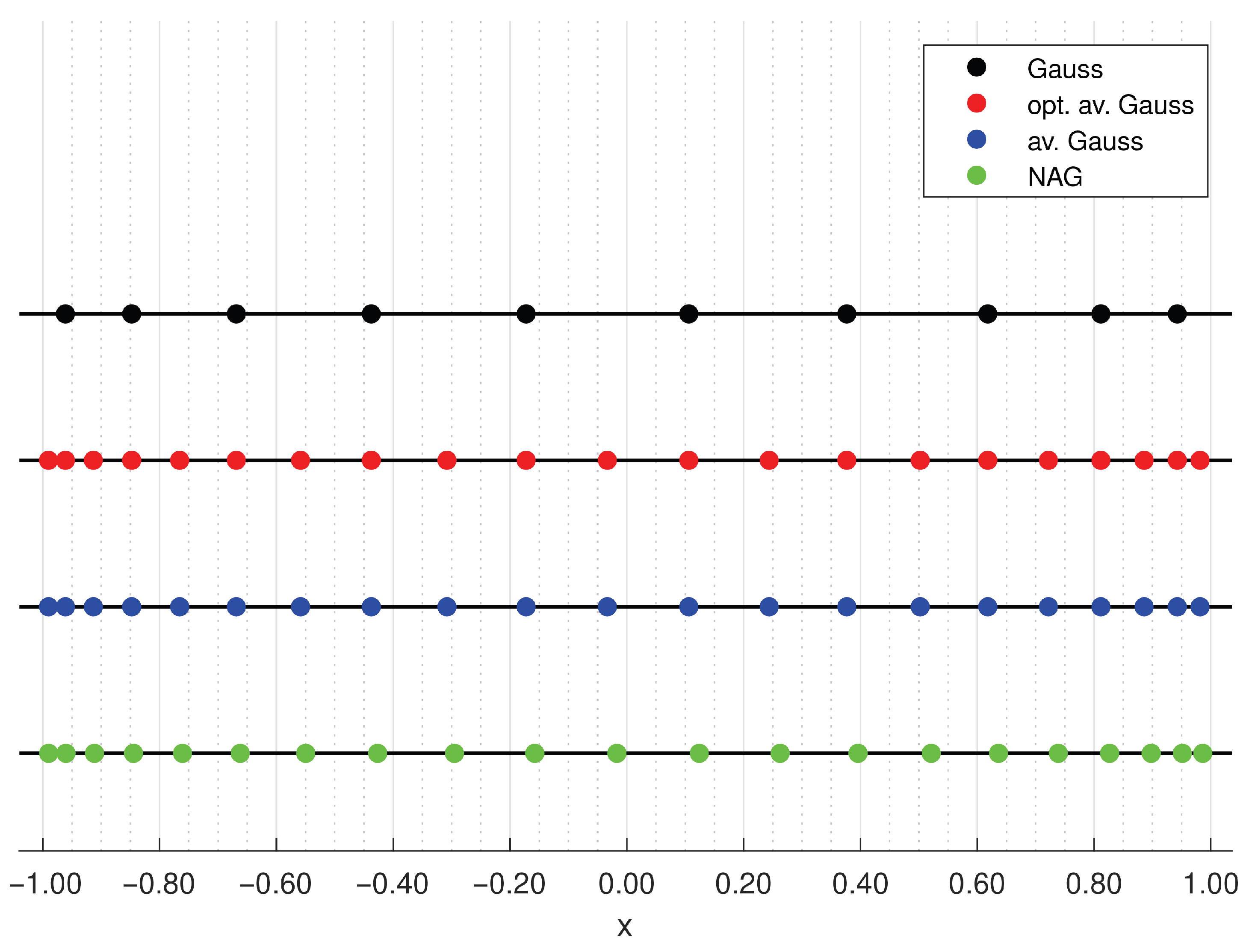 Property | Gauss–Kronrod | Optimal Averaged Gauss | Averaged Gauss | NAG |
