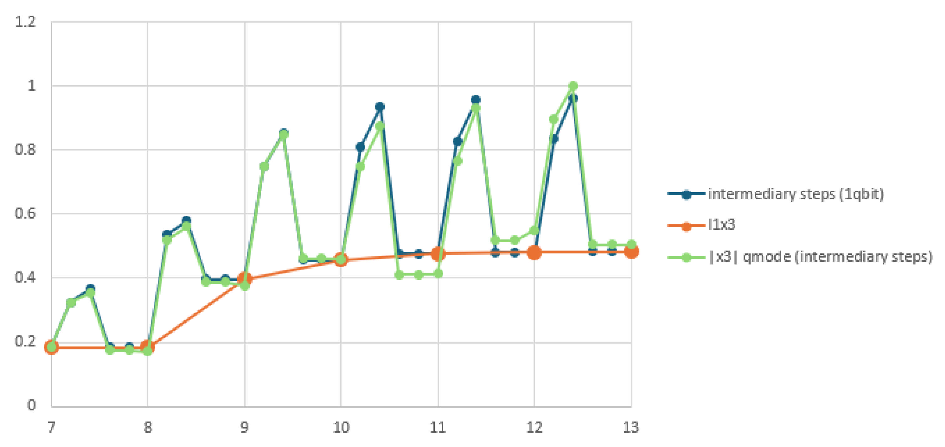 Figure 24. The goal was to replicate the same evolution obtained with one qubit per flow. While the qubit implementation uses the rotation gate