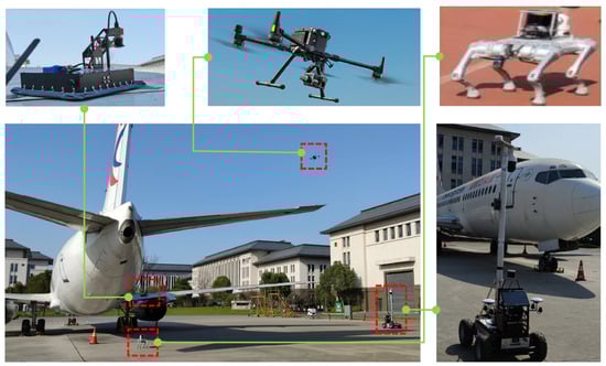 Against the backdrop of intelligent unmanned systems being increasingly deployed in airport scenarios, there is an urgent need to transition to intelligent robotic inspection systems, specifically for aircraft skin inspection. These inspection systems take Unmanned Ground Vehicles (UGVs), Unmanned Aerial Vehicles (UAVs), and wall-climbing robots as core platforms for aircraft skin scanning [7], and integrate multiple types of sensors, including visible-light cameras, Infrared (IR) sensors, and Ultrasonic (UT) equipment [8].