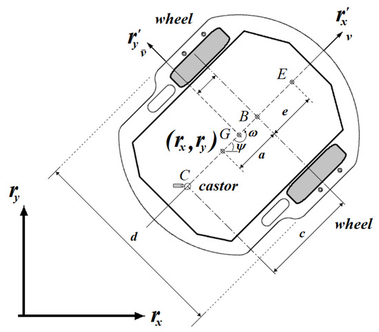 Equation (20) is the complete representation of the WMR, which includes variations not only in vehicle dynamics but also external disturbances that can affect kinematics. The control law proposed for this model (Figure 2) is indicated in