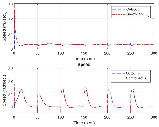 WMR output speeds () and control actions ().