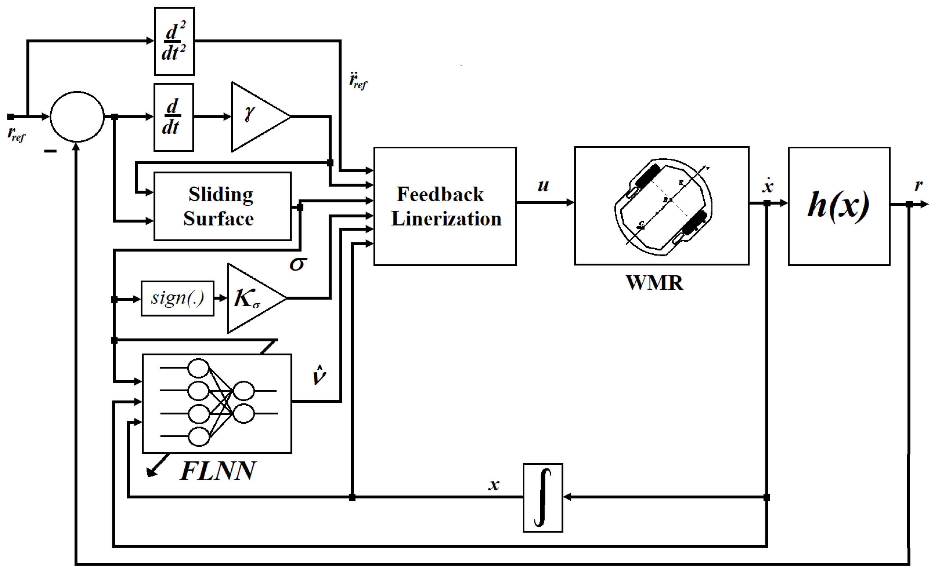 - Yang, L.; Pan, S. A Sliding mode control method for trajectory tracking control of wheeled mobile robot. J. Phys. Conf. Ser. 2018, 1074, 012059. [Google Scholar] [CrossRef]