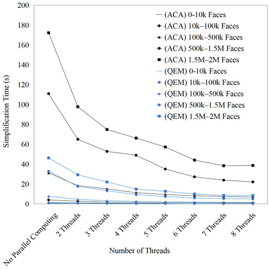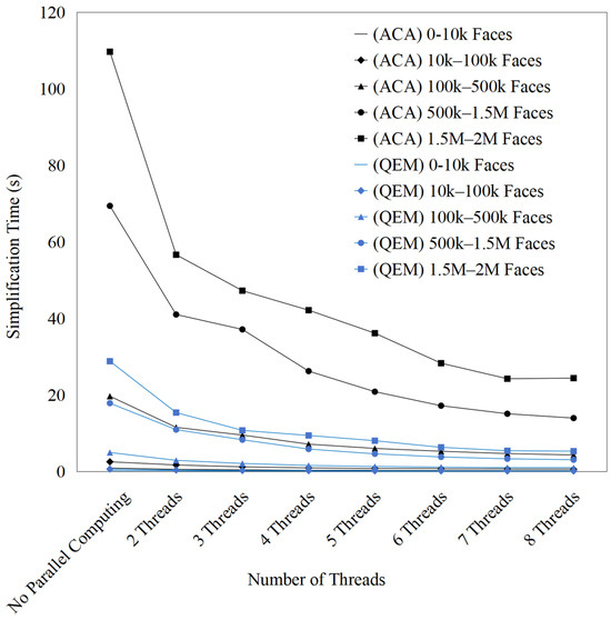 Multi-threaded parallelization calculation of 3D model simplification for computation time (simplification ratio: 50%).