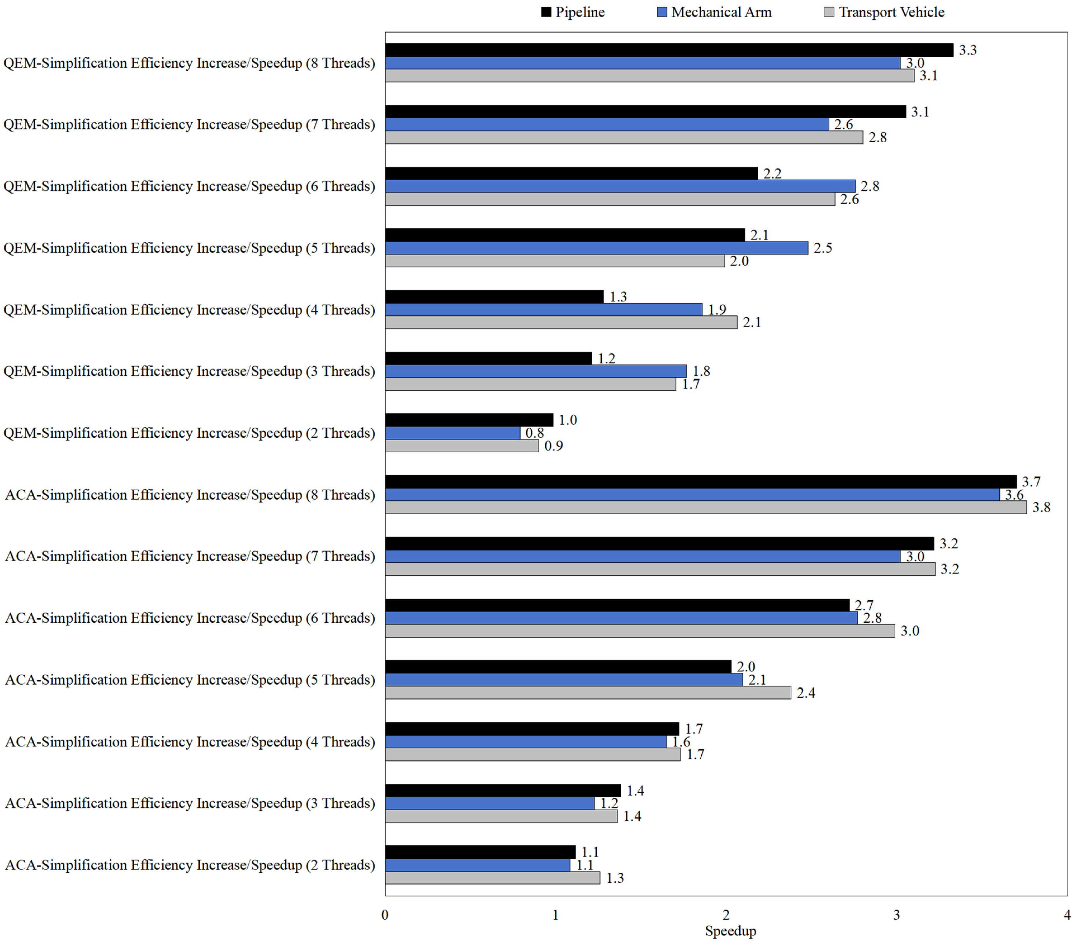 - Algorithm-Specific Insights: The QEM algorithm shows potential for lightweight optimization due to its low computational density, while the approximate curvature variant benefits more from parallelism under high thread-count environments due to its heavier computation load.