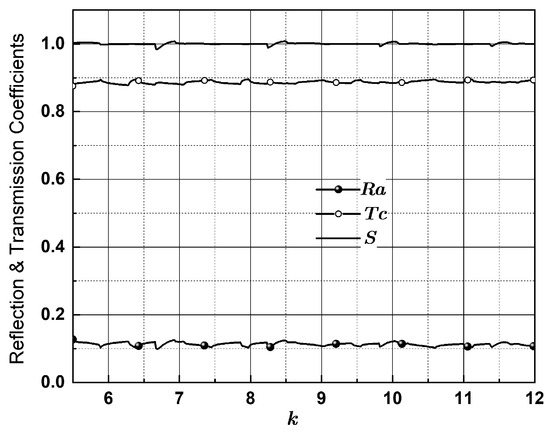 It is obvious that the smaller the wave reflection coefficient, the better the convergence of the solution. Indeed, with an increase in the value of the wave number k, the wave transmission coefficient by power tends to unity, which is confirmed by numerical calculations.
