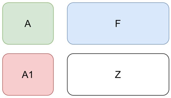 An example of input data for the CNN algorithm (A is the adjacency matrix of the normal EPS operating mode, A1 is the adjacency matrix of the post-accident mode, F is the feature vector, Z is an image fragment with zero values).