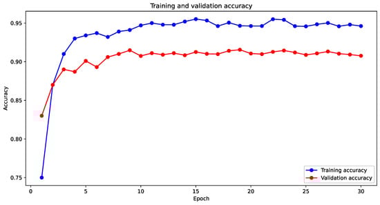The following parameters were used for the CNN: optimizer—Adam, learning rate—0.001, maximum epochs—30. Figure 10 shows the values of the change in errors of the CNN algorithm on the training and validation samples.