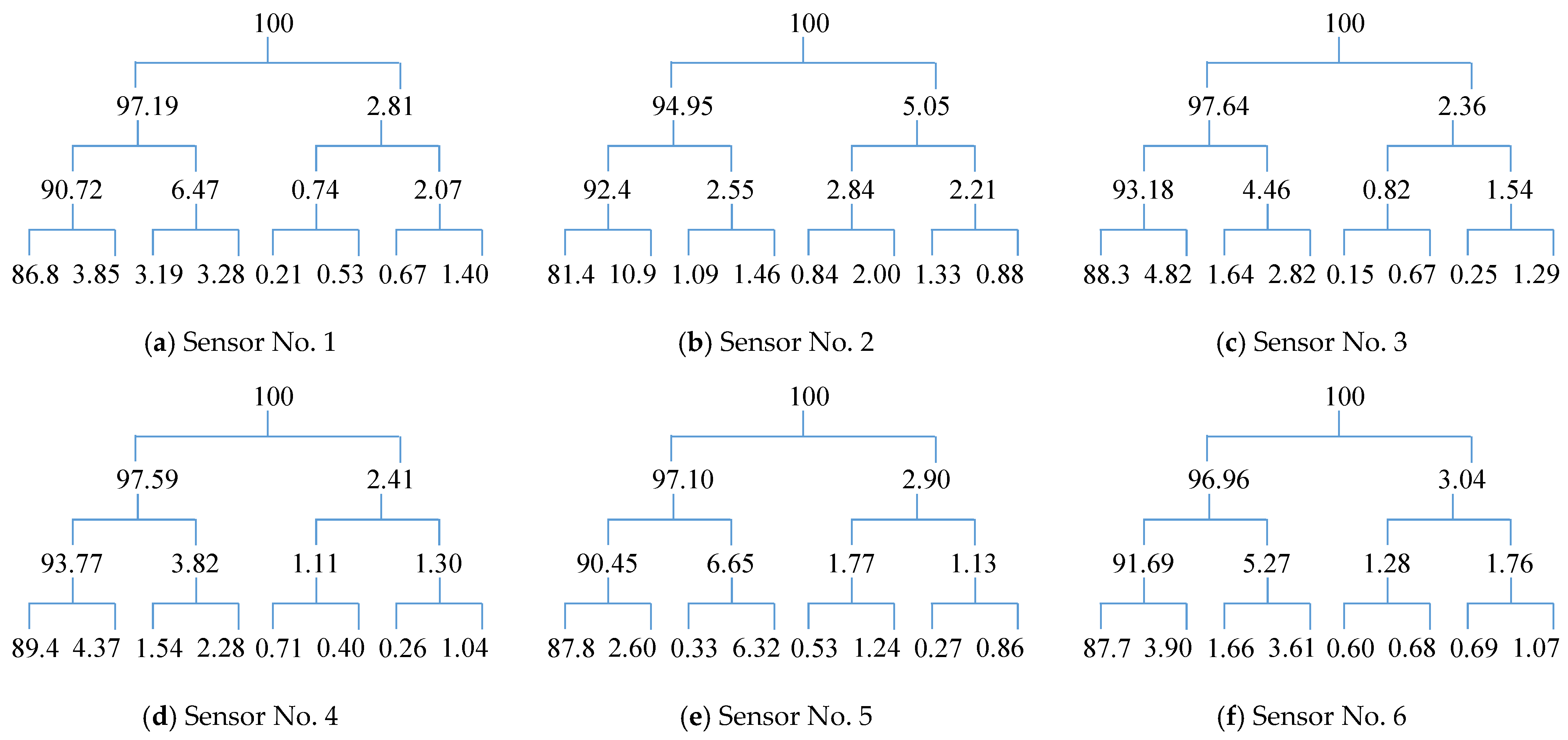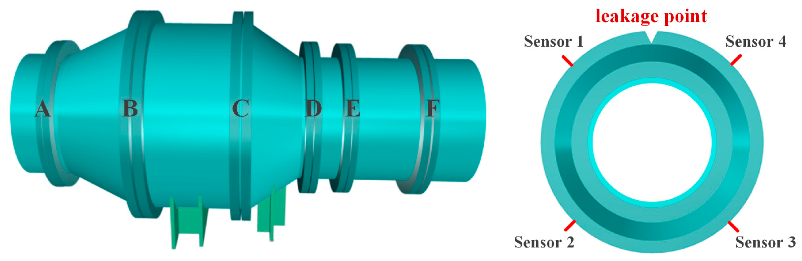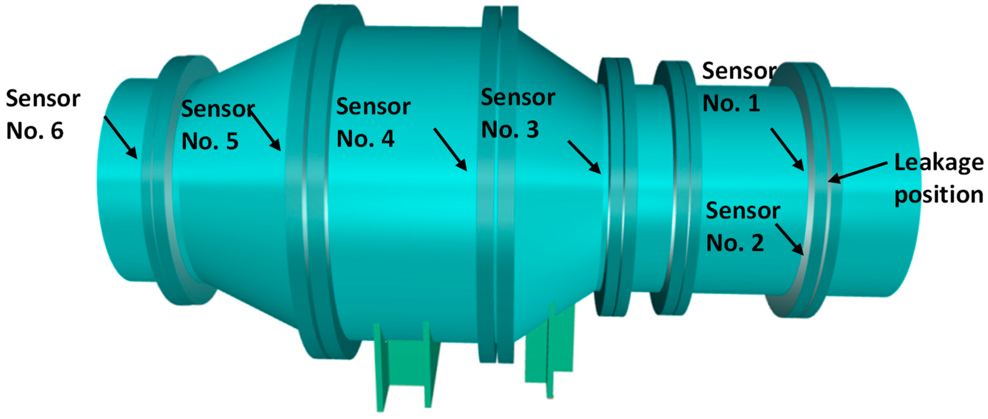 - The maximum component energy index, derived from wavelet packet analysis, accurately identified leakage locations. For sensors along the valve’s longitudinal direction, the maximum energy fractions of sensors No. 1 and No. 2 reached 64.88% and 64.48%, respectively, while among circularly arranged sensors, sensor No. 2 recorded 87.85%, all consistent with the actual leakage points.