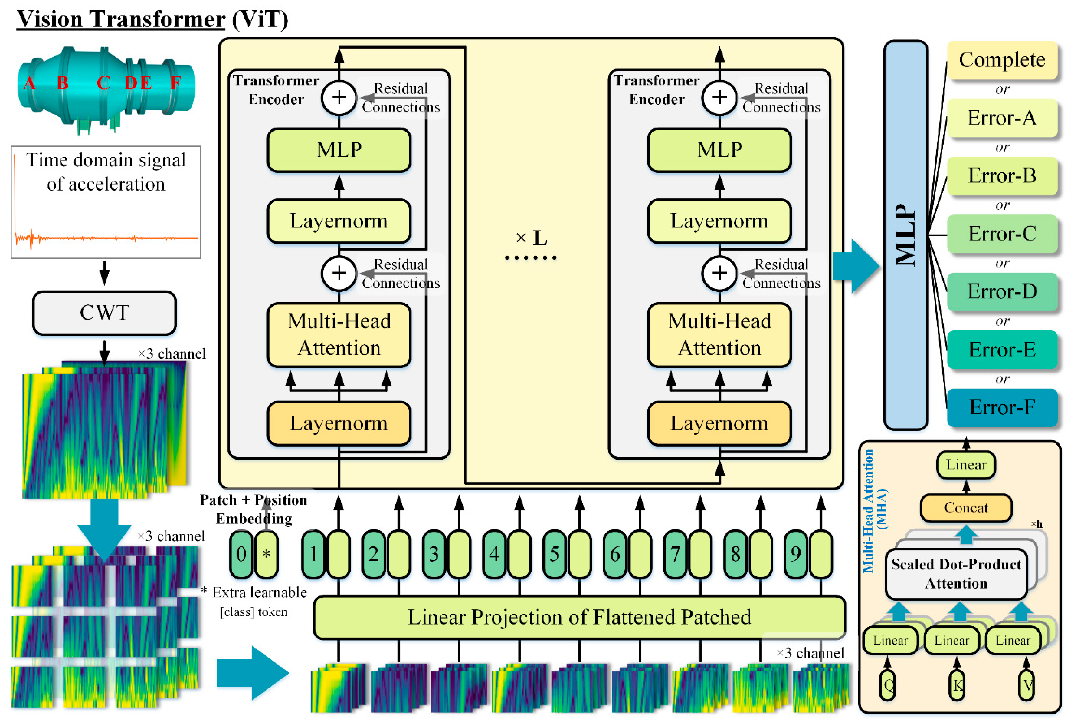APA StyleYi, F., Zhong, R., Zhu, W., Zhou, R., Wang, Y., & Guo, L. (2025). Leakage Fault Diagnosis of Wind Tunnel Valves Using Wavelet Packet Analysis and Vision Transformer-Based Deep Learning. Mathematics, 13(19), 3195. https://doi.org/10.3390/math13193195