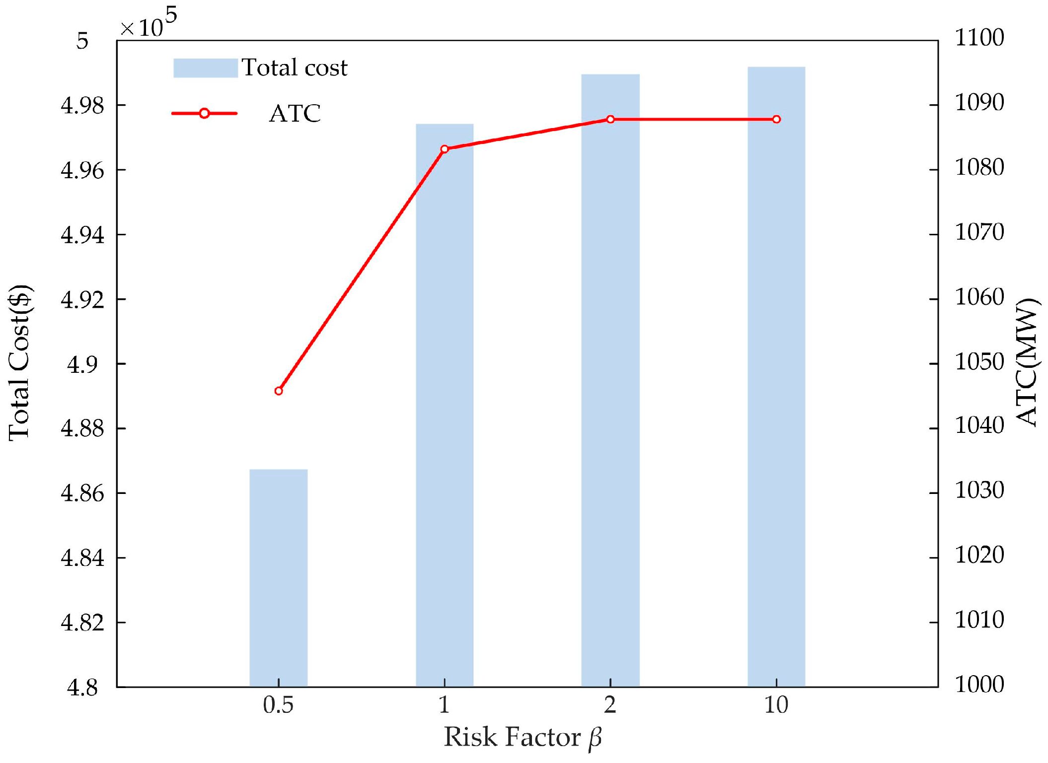 - Li, X.; Li, J.; Zhang, R.; Li, X.; Wang, M. Probabilistic Available Transfer Capability Assessment in Power System Considering Conditional Value-at-Risk and Correlated Wind Power. Trans. China Electrotech. Soc. 2023, 38, 4162–4177. [Google Scholar] [CrossRef]