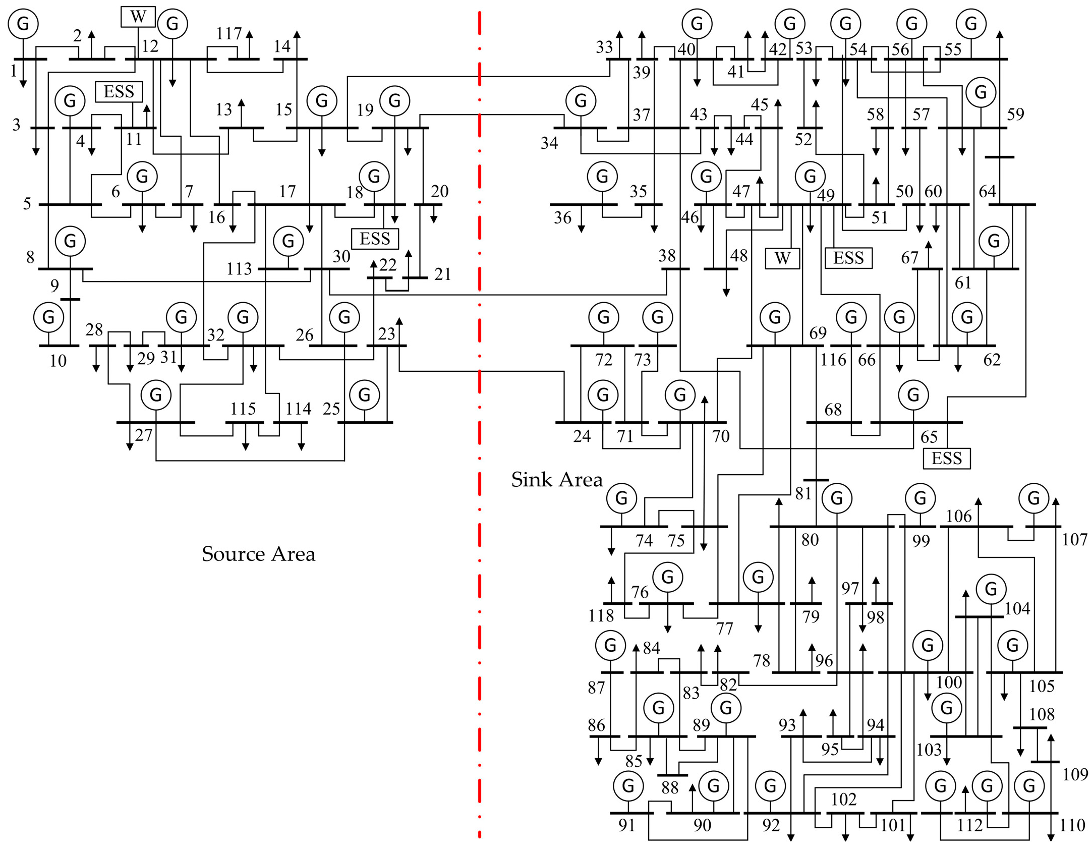 - Min, L.; Abur, A. Total transfer capability computation for multi-area power systems. IEEE Trans. Power Syst. 2006, 21, 1141–1147. [Google Scholar] [CrossRef]
