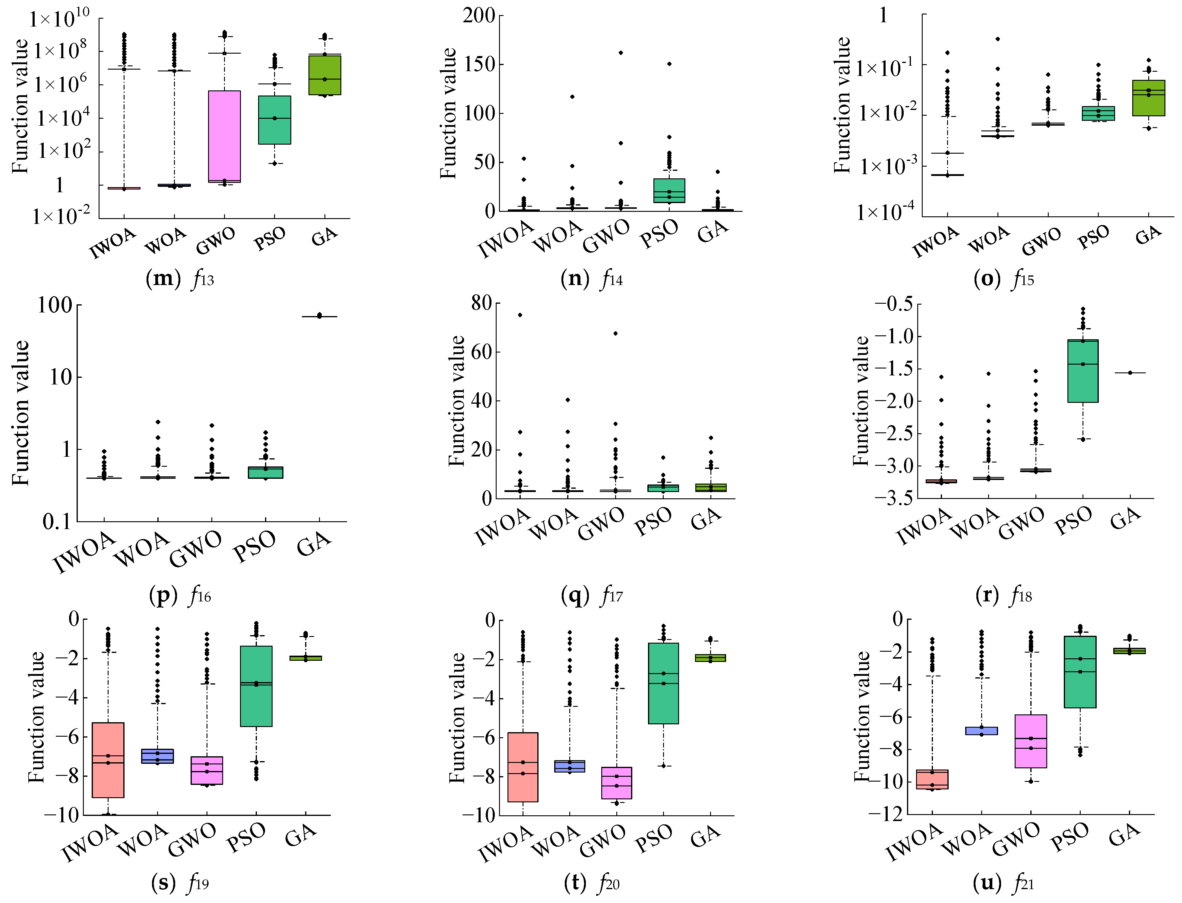 31] improved WOA by employing an elite opposition-based learning strategy. This approach enhanced population diversity and local exploration capability, increased the probability of feasible solutions approaching the optimal solution during the optimization process, and avoided premature convergence caused by limited exploration ability.