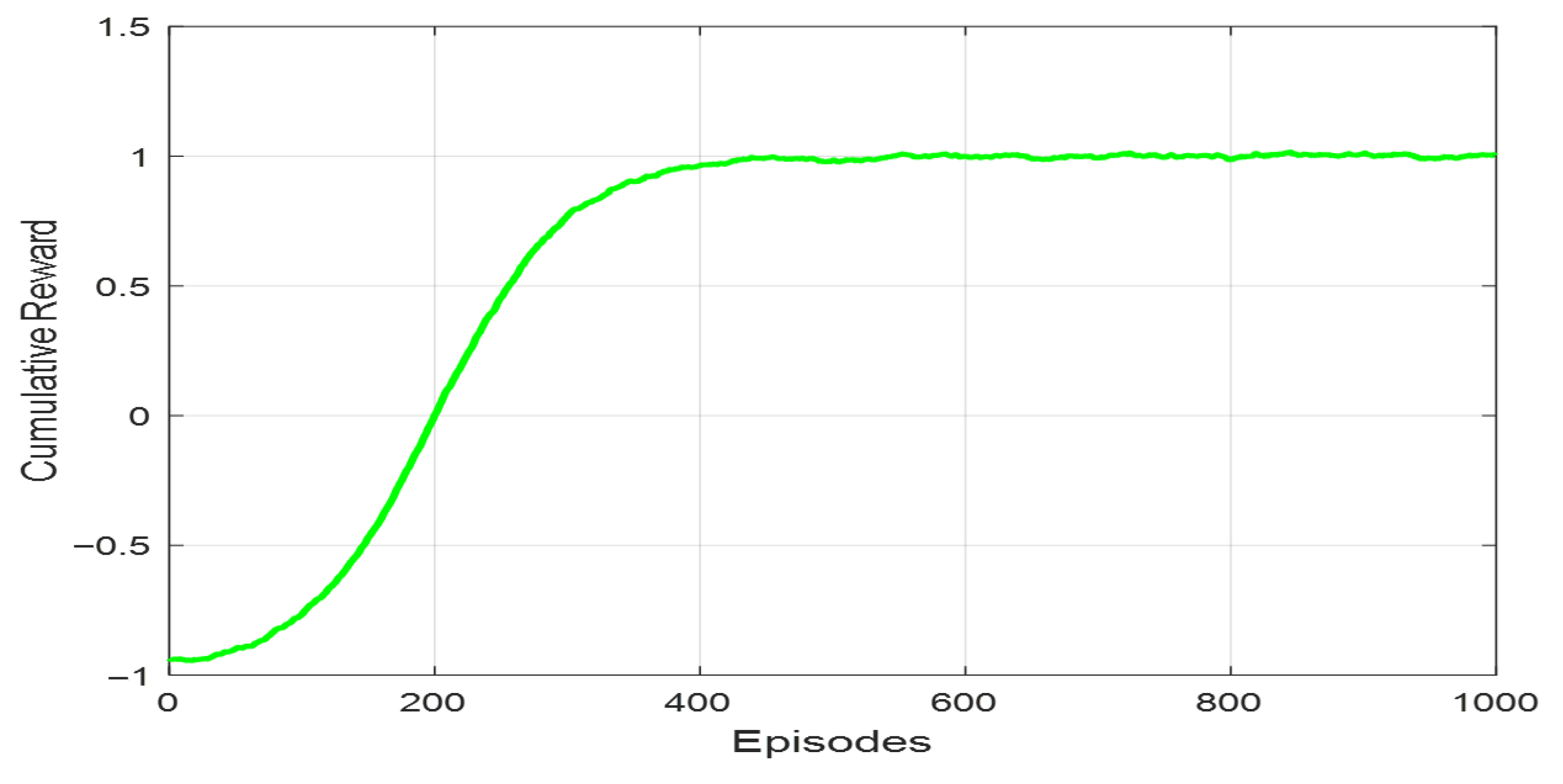11. Mnih, V.; Kavukcuoglu, K.; Silver, D.; Rusu, A.A.; Veness, J.; Bellemare, M.G.; Graves, A.; Riedmiller, M.; Fidjeland, A.K.; Ostrovski, G.; et al. Human-level control through deep reinforcement learning. Nature 2015, 518, 529–533. [Google Scholar] [CrossRef] [PubMed]