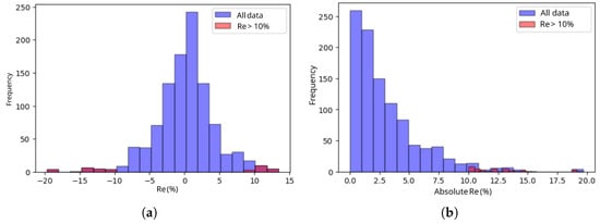 Distribution of relative error in all data. (a) . (b) Absolute .