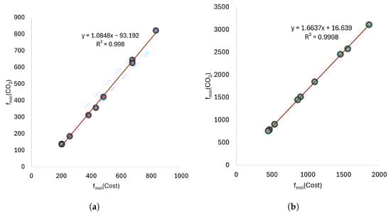 In this context, surrogate models (SMs) provide an efficient alternative by statistically representing system behavior with fewer equations and lower computational demand [22,23,24,25,26]. When combined with a full factorial design (FFD), SMs capture main and interaction effects of parameters with sufficient accuracy, thereby improving robustness. Once developed, FFD-based SMs can be integrated seamlessly into optimization algorithms, enabling the rapid evaluation of single or multiple objectives such as cost, CO emissions, and stability. Compared with classical approaches, this integration accelerates computation, reduces the risk of convergence to local optima, and maintains acceptable accuracy levels.