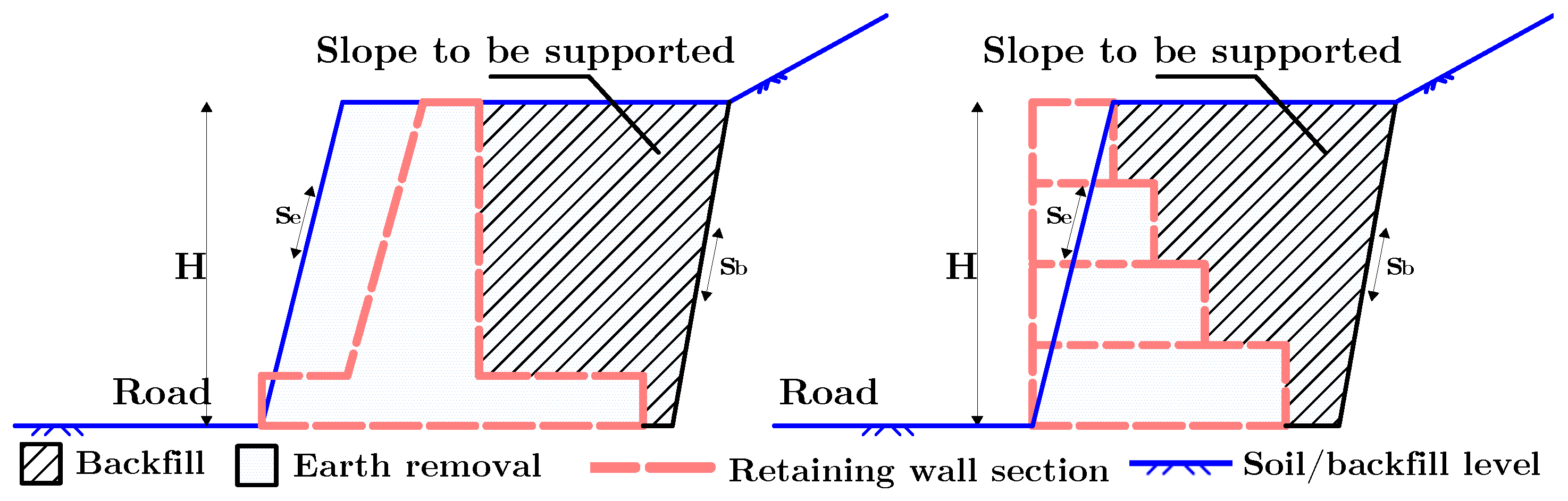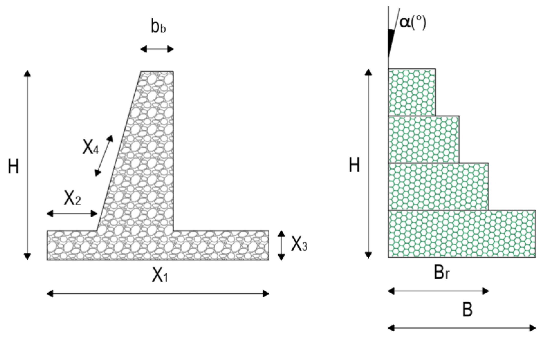 Within the scope of this investigation, these theoretical and analytical insights are reflected in the observation that walls constructed within stronger soil environments can be designed with smaller dimensions while still maintaining stability. Consequently, such designs inherently require less material, resulting in lower CO
