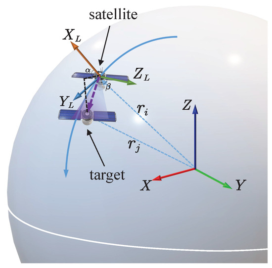 where is the transformation matrix from the Earth-centered inertial frame to the LVLH coordinate system, and and are the position vectors of target i and observation satellite j, respectively.