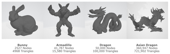 - Schütz, M.; Kerbl, B.; Wimmer, M. Rendering Point Clouds with Compute Shaders and Vertex Order Optimization. In Computer Graphics Forum; Wiley Online Library: Hoboken, NJ, USA, 2021; Volume 40, pp. 115–126. [Google Scholar] [CrossRef]