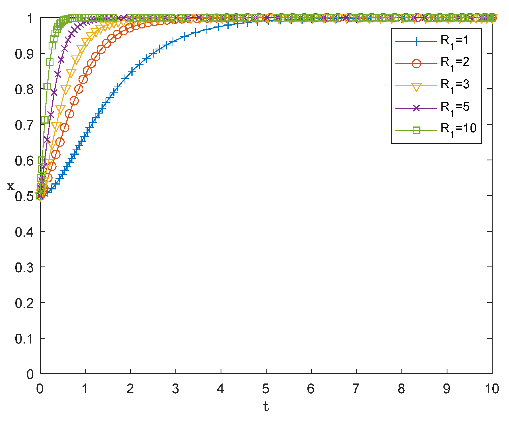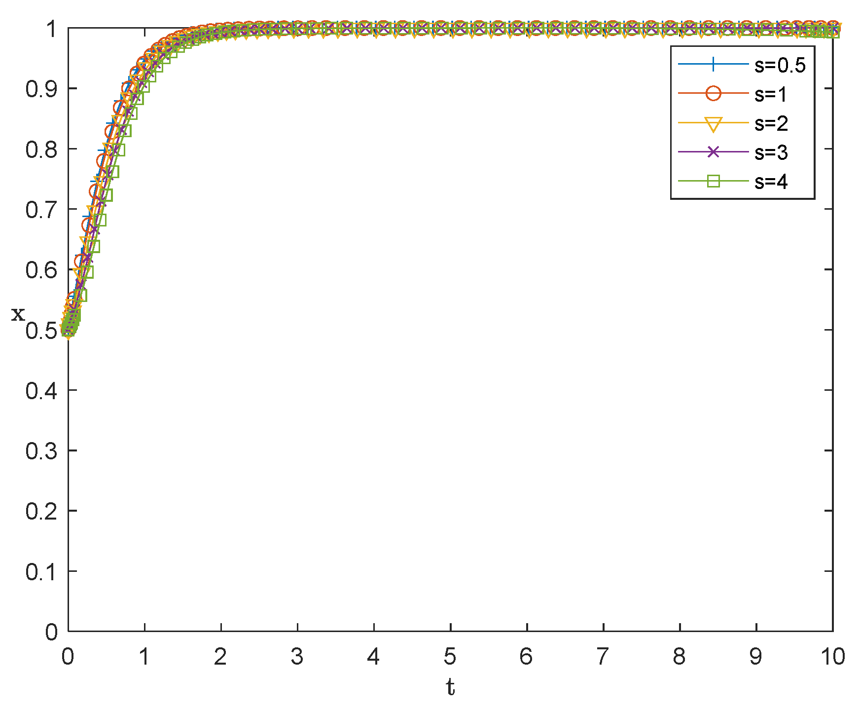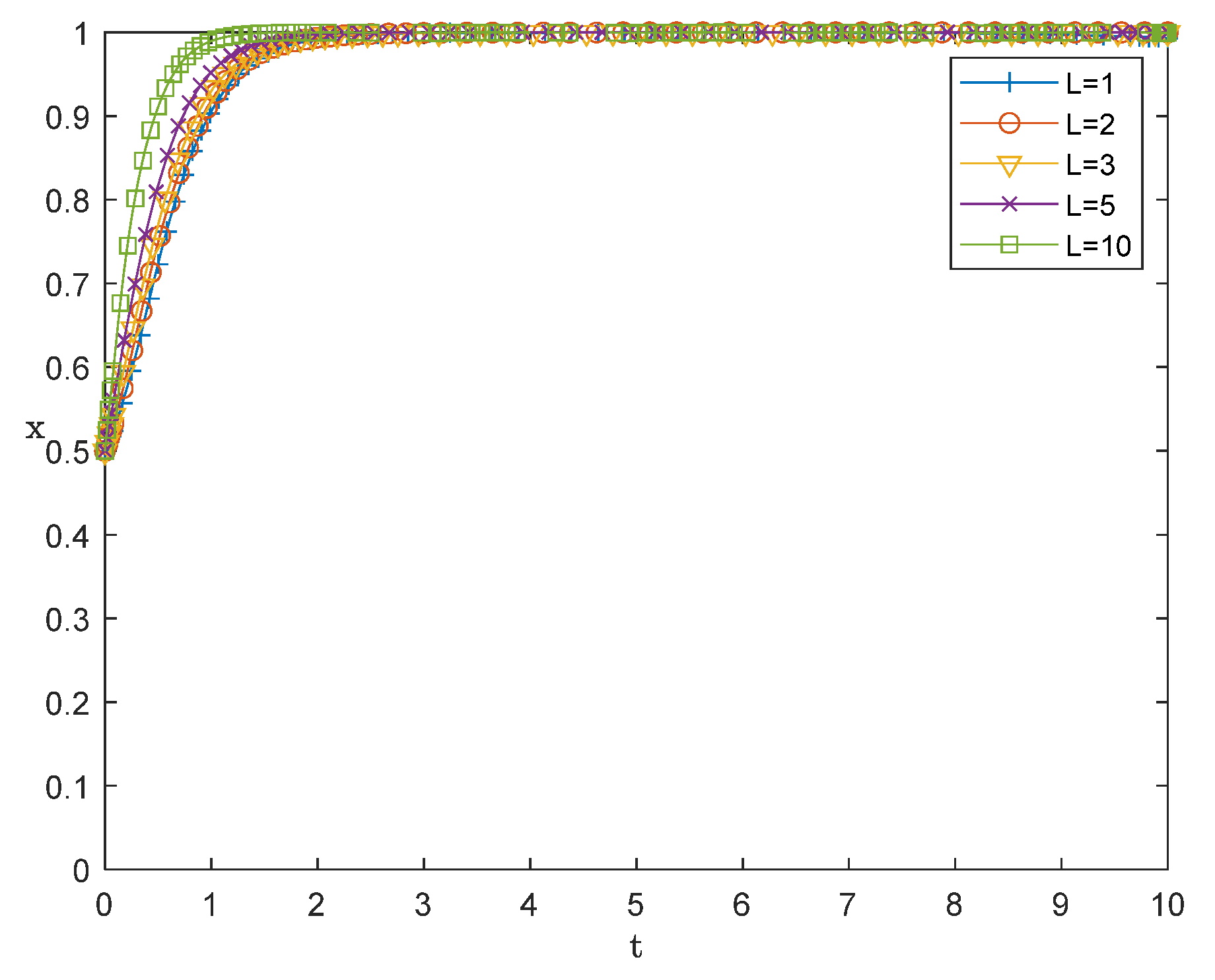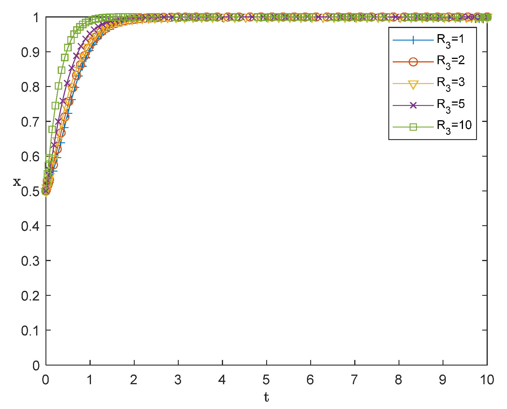 almost overlap, all converging rapidly to 1 (enterprises ultimately choose to adopt). Even when