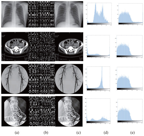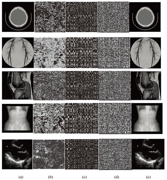 Encryption is a very common way to achieve medical image protection [7]. Full encryption of medical images was the first approach to medical image security. Most image encryption schemes were conducted in the spatial domain with full encryption methods [8,9,10,11]. In addition, the paper [12] presented an image encryption algorithm with a novel two-dimensional cross-hyperchaotic Sine-modulation-Logistic map (2D-CHSLM). Kocak et al. proposed an encryption scheme based on a logistic exponential map [13] and a color image encryption algorithm using a 2D hyperchaotic map [14]. A medical image encryption scheme was proposed in [15]. Feng et al. researched a multi-image encryption scheme [16], a pixel fusion strategy for image encryption [17], and a multichannel image encryption scheme based on hyperchaotic maps [18]. Wang et al. proposed a color image encryption scheme [19]. The research [20] encrypted face images based on DNA diffusion. A three-dimensional chaotic map for ship image encryption was proposed in [21].