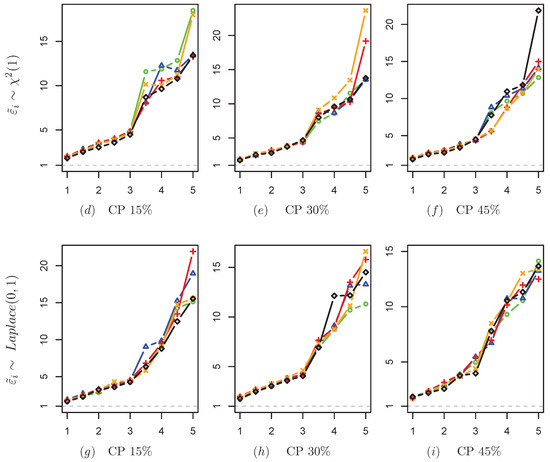 In the simulation, the covariates are generated from different distributions to simulate different types of variables commonly found in real data. The error term is generated by three different distributions, specifically, by drawing independent identically distributed random numbers with capacity n, and letting , where obeys the distributions: ; ; . Let the regression coefficient , given the quantile ; then, the response variable is modeled by