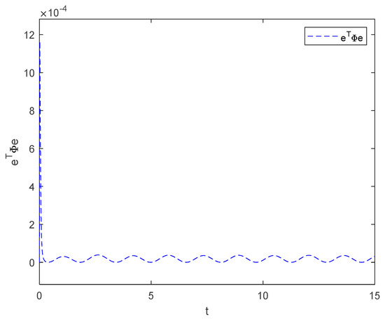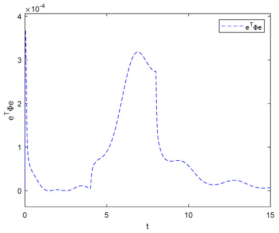 Based on Theorem 3, by applying the LMI toolbox in MATLAB to solve the LMI conditions (26) and (27), the matrix variables , , and are obtained. Furthermore, from and , the gain matrix is computed as