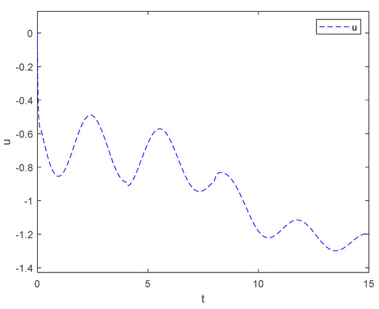 As shown in Figure 7, the closed-loop system has also achieved finite-time bounded tracking of the target signal with respect to . From Figure 8, it can be seen that the input of the system is bounded.
