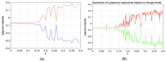 (a) Lyapunov exponent based on Gauss–Legendre; (b) Lyapunov exponent based on Runge–Kutta.