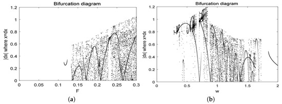 (a) Bifurcation of parameter F based on Gauss–Legendre; (b) Bifurcation of parameter w based on Gauss–Legendre.