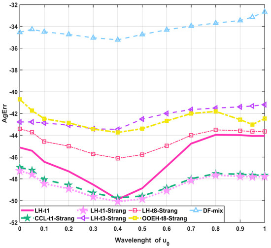 Aggregated errors (AgErr) for different wavelength values of the top 7 methods.