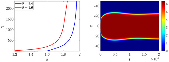 4. Riesz Derivative in Space and Conservative () Dynamics in Time