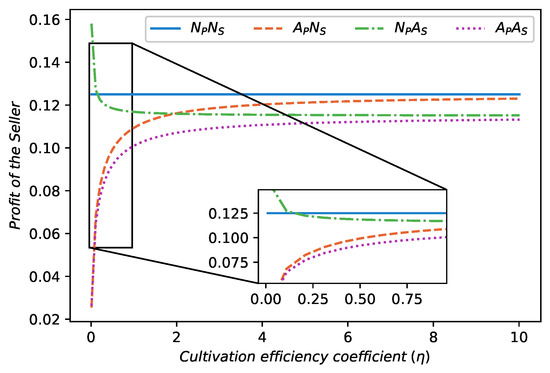 Subsequently, substitute and into the seller’s profit function (i.e., Equation (14)) and obtain . Further, solve the equation and obtain the response function . Further, , and .