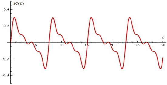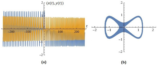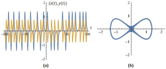 - Diverting homoclinic chaos in a class of piecewise smooth oscillators to stable periodic orbits using small parametrical perturbations is considered in [19]. The authors consider the modelwhere F is the amplitude, is the angular frequency, and is the phase position of the sinusoidal control signal. Other interesting results can be found in [20,21,22]. In a number of cases, in the process of calculating Melnikov’s functions, researchers find that their expressions cannot be solved analytically because homoclinic orbits are very complex. For this purpose, numerical algorithms are usually proposed and used in practice. Following the considerations in this article, the reader can successfully formulate and investigate the dynamics of the following new class of extended mixed oscillators:The detailed study of the dynamic model, as well as the role of the coefficients in generating a probabilistic construction for controlling oscillations, will be the subject of our future research.