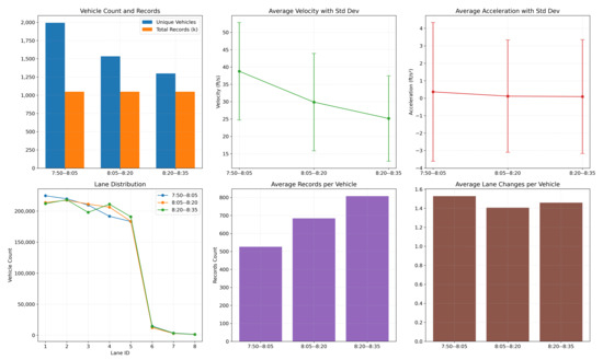 As shown in the figure above, the data from 8:05 a.m.–8:20 a.m. demonstrate optimal conditions in terms of traffic flow, stability, and lane-change behavior.
