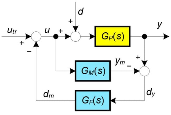 Disturbance rejection was achieved by feeding back the estimated disturbance signal. The estimation was calculated by comparing the process and model outputs and filtering the difference by the filtered inverse process model. The (reduced) process model can be easily calculated by running online Matlab/Octave scripts [] or by downloading Matlab/Simulink scripts [].