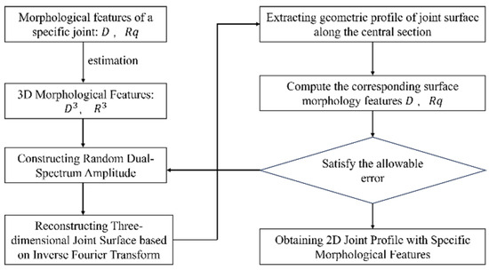 Building upon the work of Yang (2016) [27], who proposed a quantitative construction method for three-dimensional joint surfaces with varying morphological features through the systematic construction of dual frequency domain amplitudes, we extend this approach by incorporating the definition of two-dimensional morphological features. This enables the development of a two-dimensional joint surface construction method capable of specifying quantitative morphological characteristics. The detailed construction method is illustrated in Figure 2.