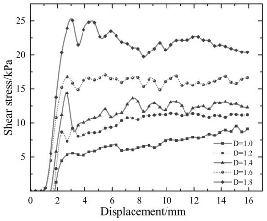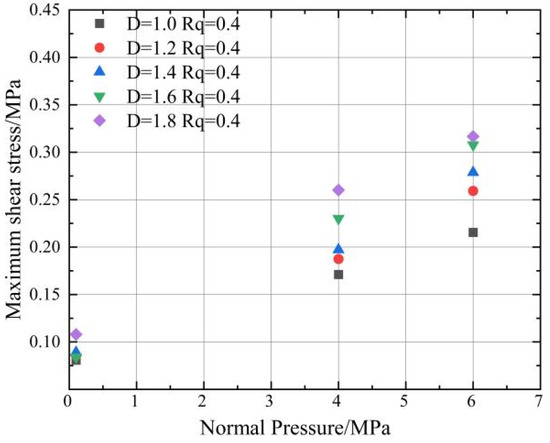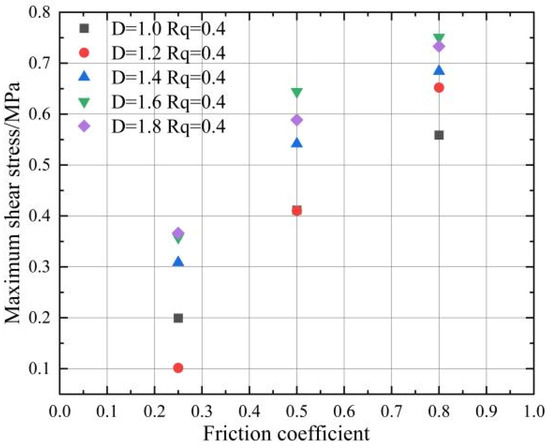 Calculation results of shear stress with different D values (Rq = 0.4, μ = 0.2).