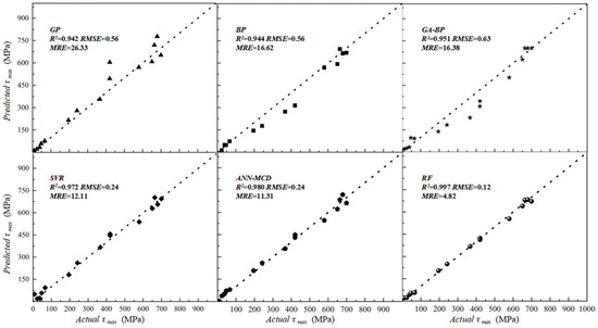 The random forest model achieves the smallest RMSE and MRE values and the highest R² value across both training and test sets, highlighting its superior prediction accuracy and computational efficiency. In engineering applications, this translates to the model’s ability to deliver rapid and precise predictions, facilitating faster design and construction decision-making while minimizing risks arising from inaccurate forecasts.