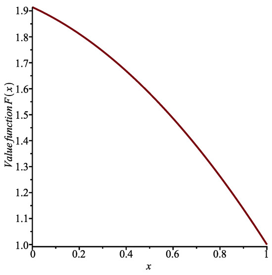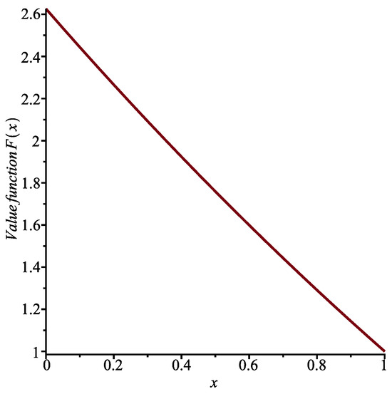 Figure 3. Value function F ( x ) for 0 x 1 in Case III (a) with θ = λ = α = b 0 = q 0 = K 0 = d = 1 .