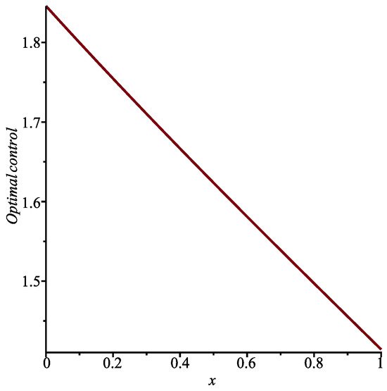 Choosing the same constants as those in Case I and α = 1 , we can obtain (using a numerical method) both the value function F ( x ) and the optimal control u * ( x ) in the interval [ 0 , 1 ] ; see Figure 3 and Figure 4.