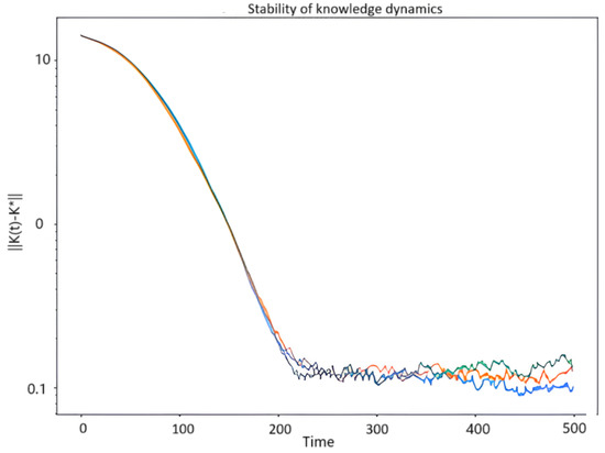 - Confirmation of the stability properties of knowledge equilibria, suggesting that organizations tend to converge towards stable knowledge states despite short-term fluctuations.