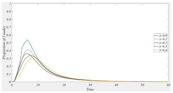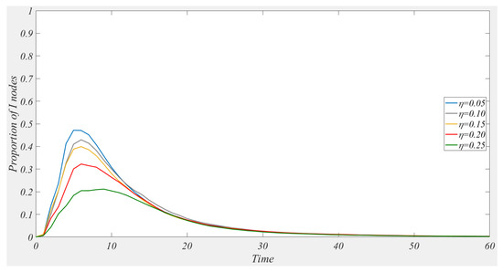 Actively popularizing positive and accurate information about rumors can raise the number of initially immune users, providing a certain level of prevention against rumor propagation. In this study, the information popularization rate is introduced, with the parameter representing the information popularization coefficient, indicating the scope of information popularization. At , set
