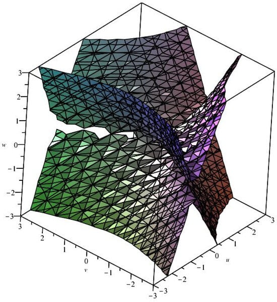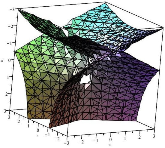 Recall, after ([], p. 192), that a cross ratio with the value is called harmonic. Hence, we call the harmonic cubic curve. We have . We denote and . In coordinates , the cubic from (3) is the (real) algebraic surface given by the implicit equation