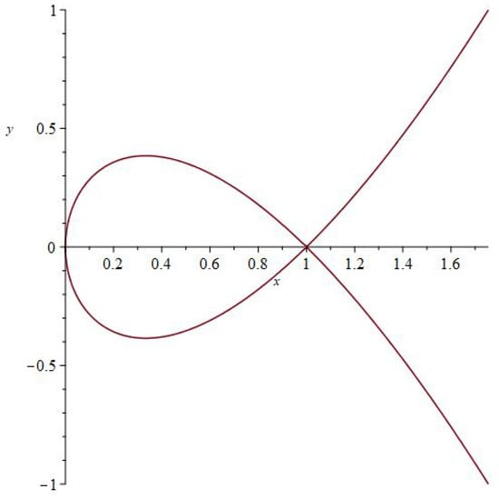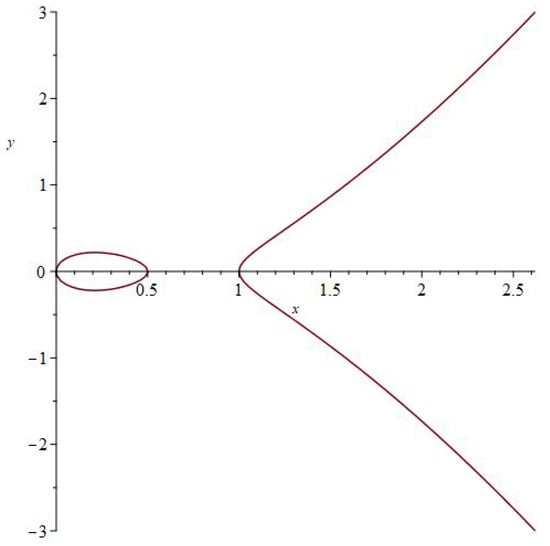 For and , the first coordinates of the vertices are (approximately) and , respectively. Hence, and have four vertices each. In this case, there exists a third root of Equation (17) (namely, 0 and 1, respectively), but the points on the curves ((0,0) on and (1,0) on , respectively) are not regular.