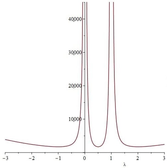The graph of λ is convex for and concave otherwise. Hence, the middle connected component is convex, and the two side components (“left–right”) are concave.