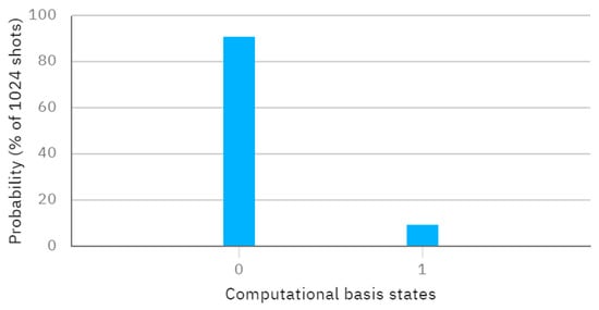 The quantum circuit implementation of the above process for determining whether is shown in Figure 3. The measurement results obtained by executing the quantum circuit on the IBM Quantum Experience are presented in Figure 4.