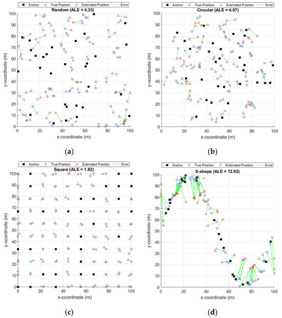 The number of ANs in the network plays a crucial role in determining localization accuracy. This section explores the impact of varying the AN ratio on the overall performance of the localization process. In the experiment, 100 sensor nodes were randomly deployed across various topologies within a 100 m × 100 m